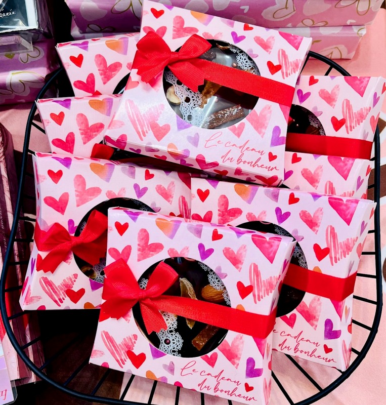 ●フルーティーさとナッツの香ばしさが引き立つスイートチョコレートを使用して仕上げました。