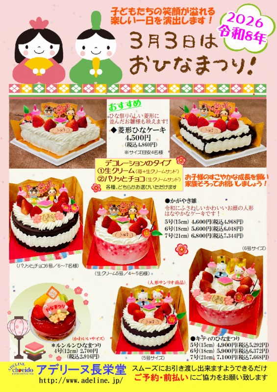 ひな祭りらしい伝統的な菱形ケーキ、並んだお雛様も映えます!